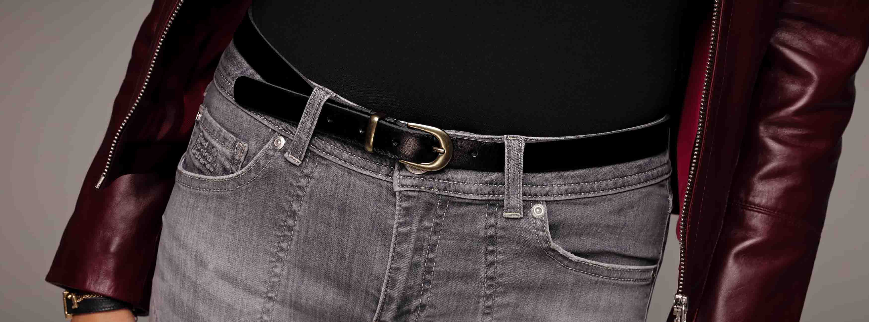 Lasse │ Ceinture classique en cuir skinny pour femmes - Black