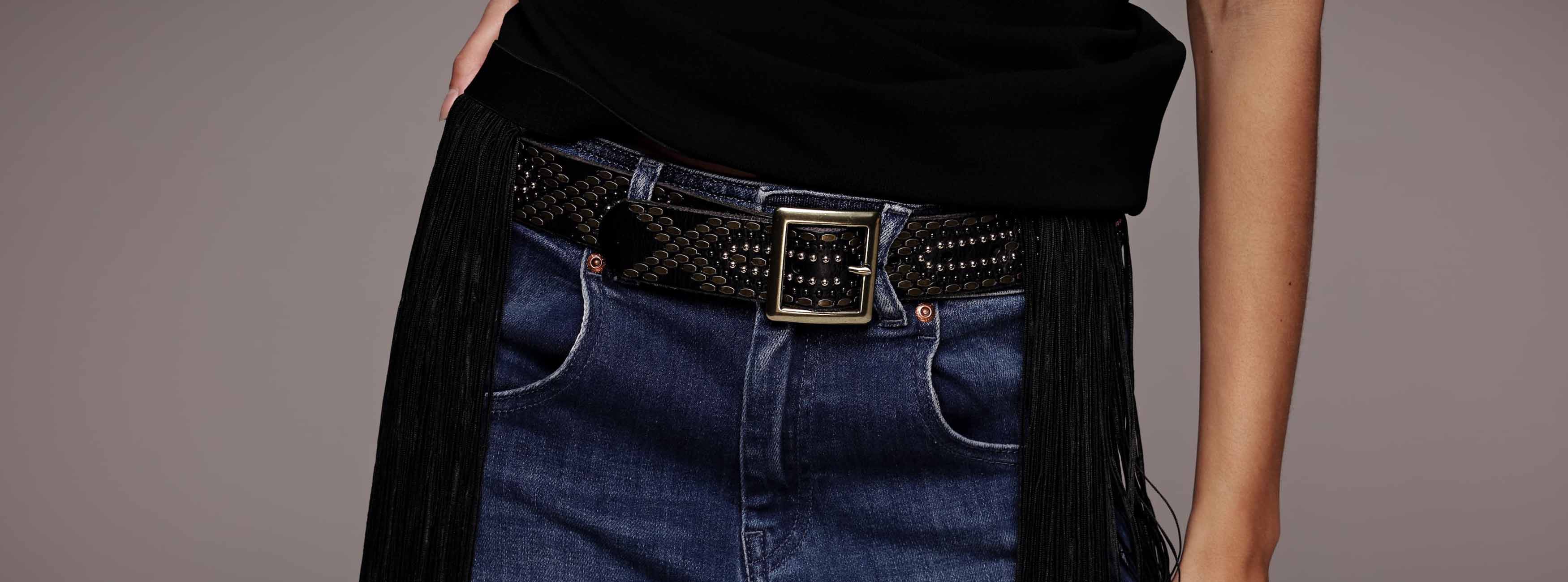 MADE TO ORDER Annie │ Ceinture de jeans classique pour femmes avec boucle dorée à déclaration - Noir