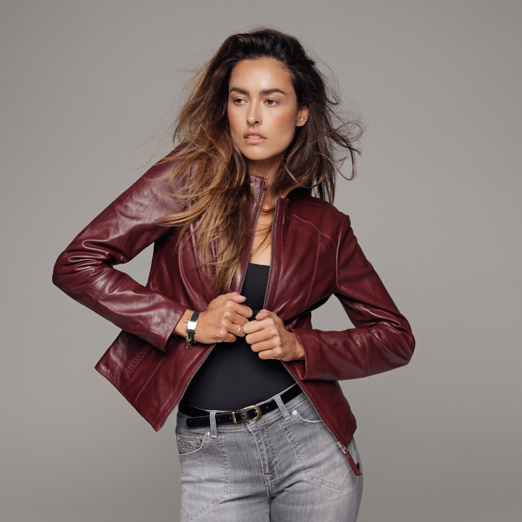 Une veste courte est parfaite pour ajouter une touche élégante à votre tenue sans être trop encombrante. Notre veste moto en cuir Marlin pour femmes est idéale pour expérimenter avec des proportions, qu'elle soit portée avec un jean taille haute pour un look quotidien...- €349.95