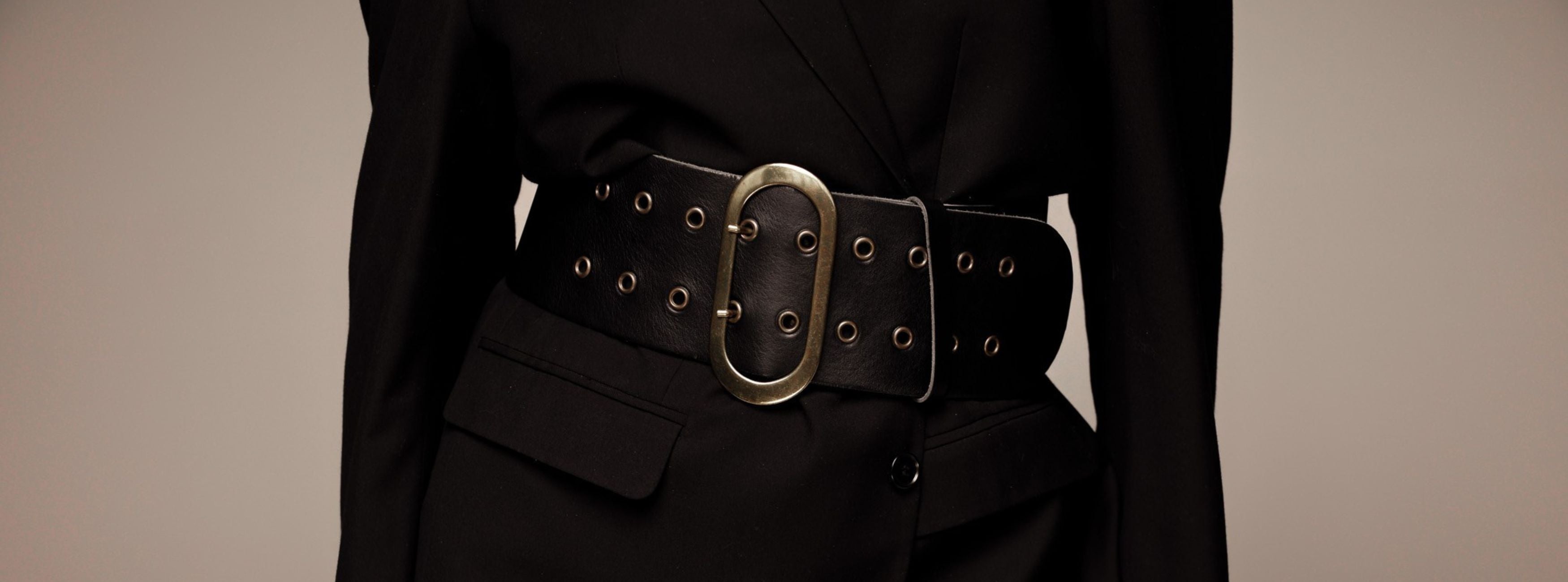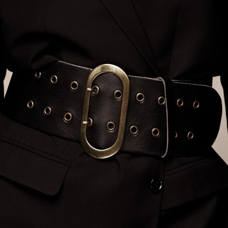 MADE TO ORDER Rena │ Ceinture large en cuir avec doubles œillets - Noir