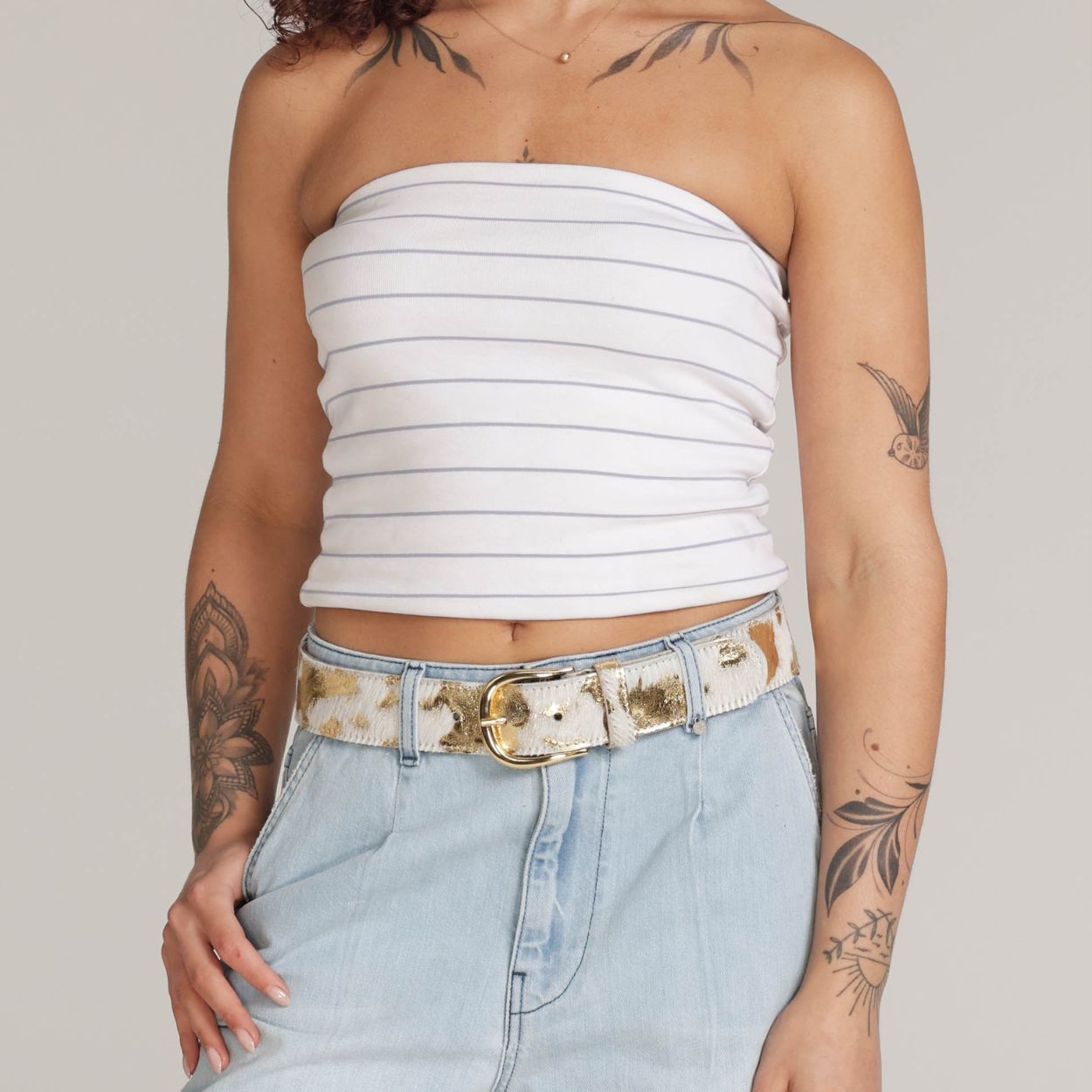 Le motif de vache traditionnel vient de recevoir une mise à niveau, alors faites de la place, car nous sommes vraiment obsédés par les imprimés animaux. Cette fois-ci réinterprété avec des motifs en feuille métallique, la ceinture Dakota donne à chaque tenue une définition intéressante avec son luxueux cuir de veau et une boucle courbée brillante.